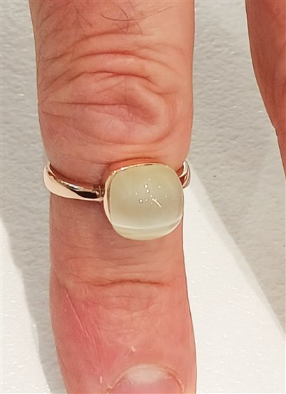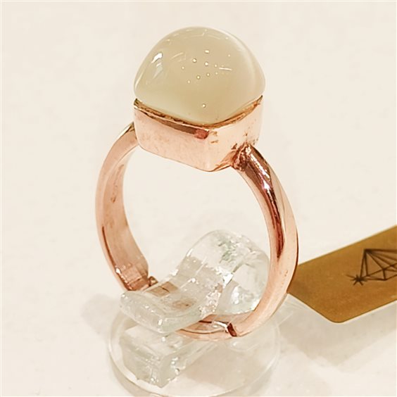 Elegante anello in argento rosa modello Pomellato con pietra centrale in rilievo, gambo aperto per modifica veloce.