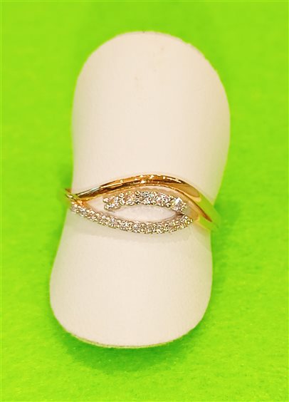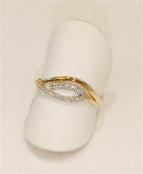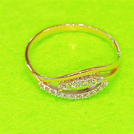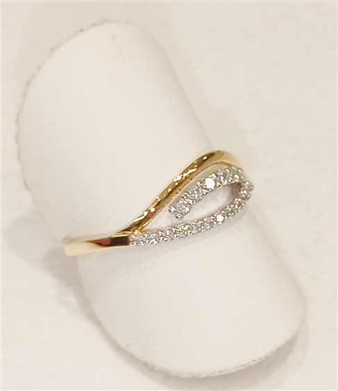 ELEGANTE ANELLO IN ORO GIALLO E BIANCO CON ZIRCONI INCASSATI A GRIFFE.