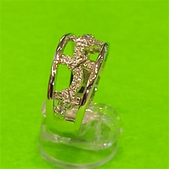 ELEGANTE ANELLO MODELLO FEDE FANTASIA CON ZIRCONI INCASSATI A GRIFFE.