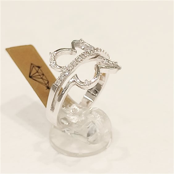 ANELLO IN ORO BIANCO FANTASIA FARFALLA CON RIVIERA DI DIAMANTINI AL CENTRO INCASSATI A GRIFFE.