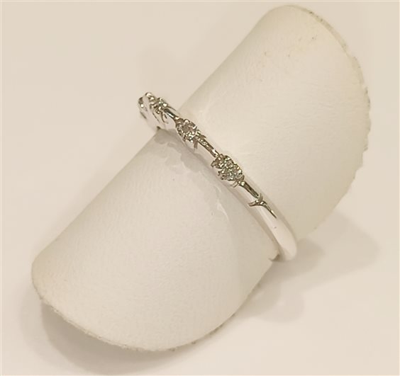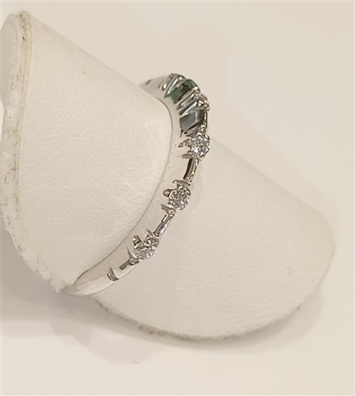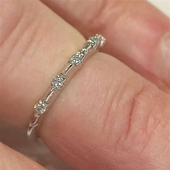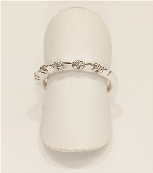 ELEGANTE ANELLO IN ORO BIANCO MODELLO RIVIERA CON CINQUE PIETRE ZIRCONI INCASSATI A GRIFFE.