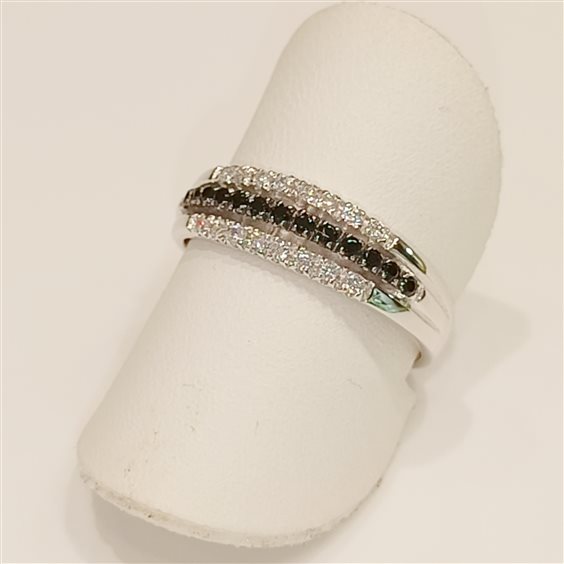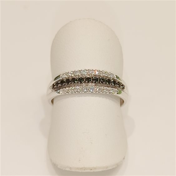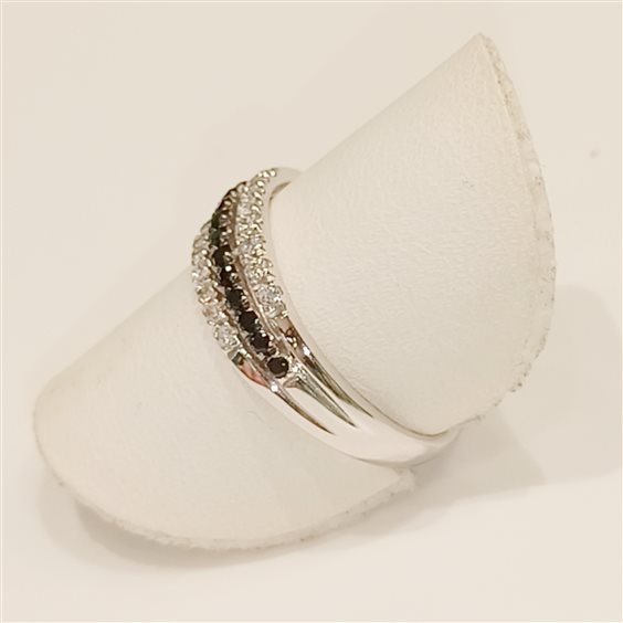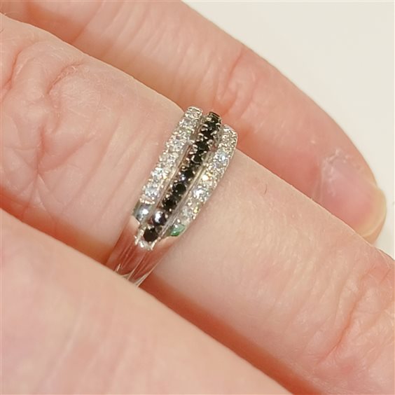 ELEGANTE ANELLO RIVIERA A TRE FILI, DUE CON ZIRCONI BIANCHI E UNO CON ZIRCONI NERI.