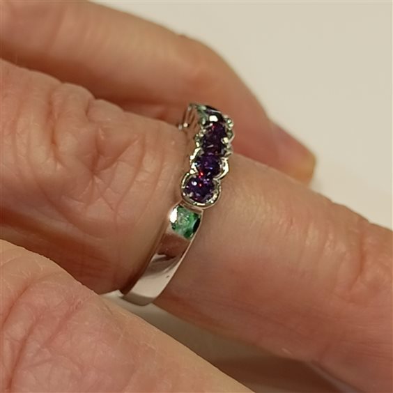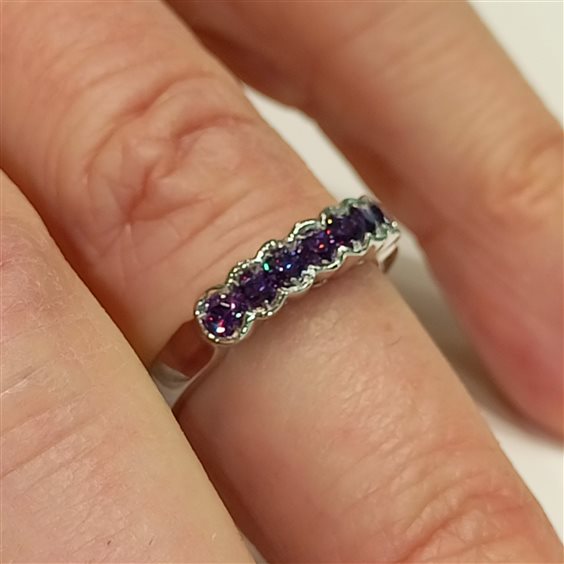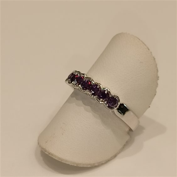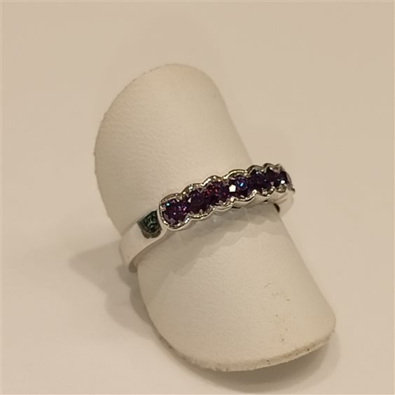 ELEGANTE ANELLO IN ORO BIANCO CON ZIRCONI COLOR VIOLA.