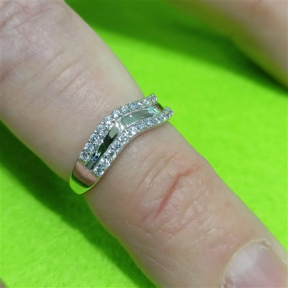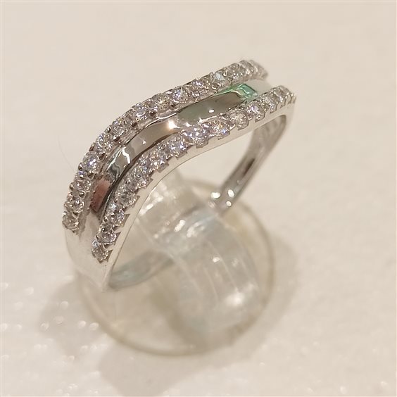 ELEGANTE ANELLO IN ORO BIANCO MODELLO FEDINA CON ZIRCONI INCASSATI A GRIFFE.
