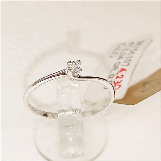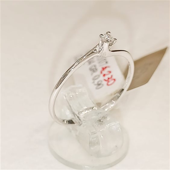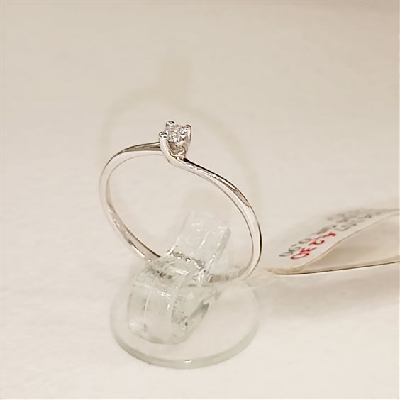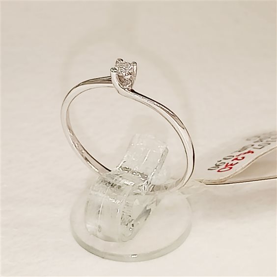 ELEGANTE ANELLO SOLITARIO IN ORO BIANCO CON DIAMANTE TAGLIO BRILLANTE INCASSATO SU CASTONE RIALZTO A GRIFFE.