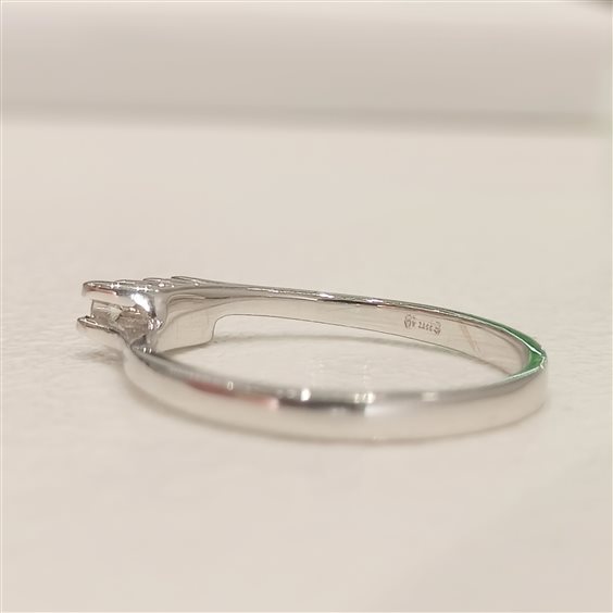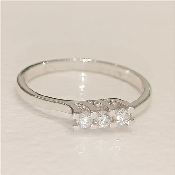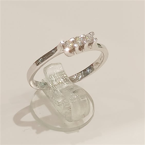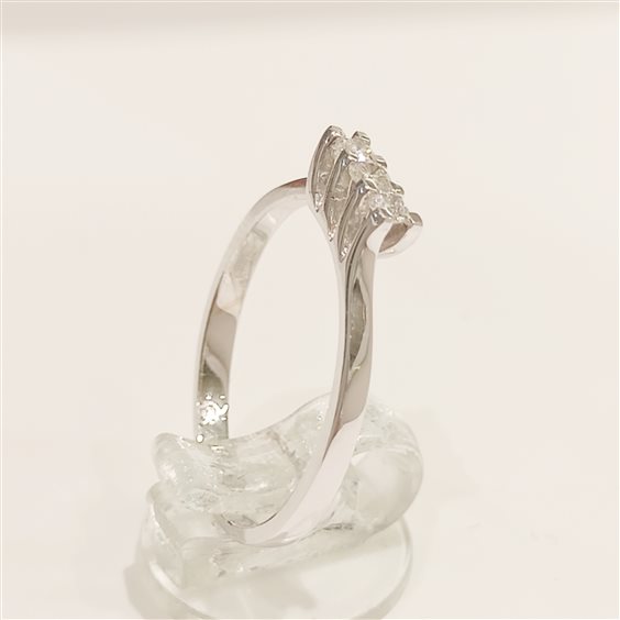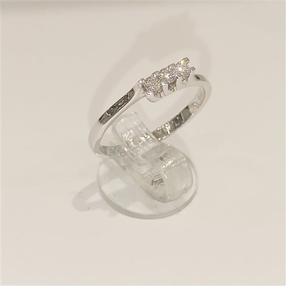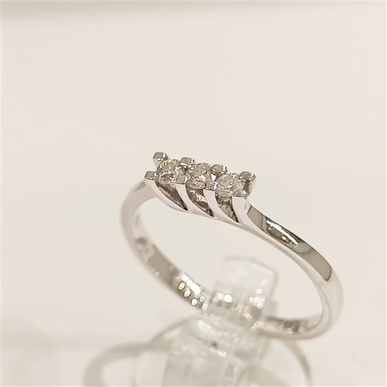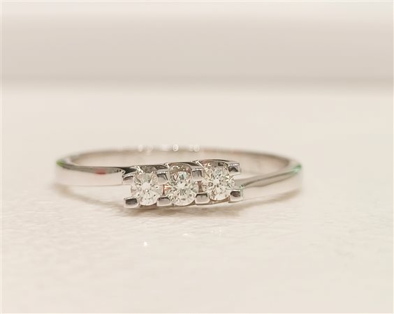 ELEGANTE ANELLO TRILOGY IN ORO BIANCO CON DIAMANTI TAGLIO BRILLANTE INCASSATI SU CASTONE RIALZATO A GRIFF spianate . TOT. CT 0,15