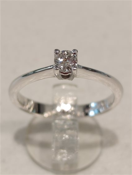 ELEGANTE E PREZIOSO ANELLO SOLITARIO IN ORO BIANCO CON DIAMANTE TAGLIO BRILLANTE COLORE "F" INCASSATO A FRIFFE