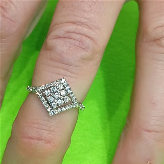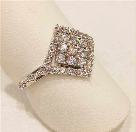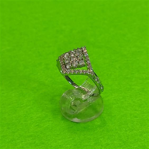ELEGANTE ANELLO IN ORO BIANCO MODELLO FANTASIA CON ZIRCONI INCASSATI A GRIFFE.