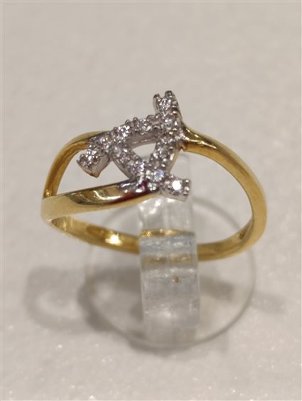 ANELLO IN ORO GIALLO E BIANCO CON ZIRCONI INCASSATI A GRIFFE SU DISEGNO DI FANTASIA.