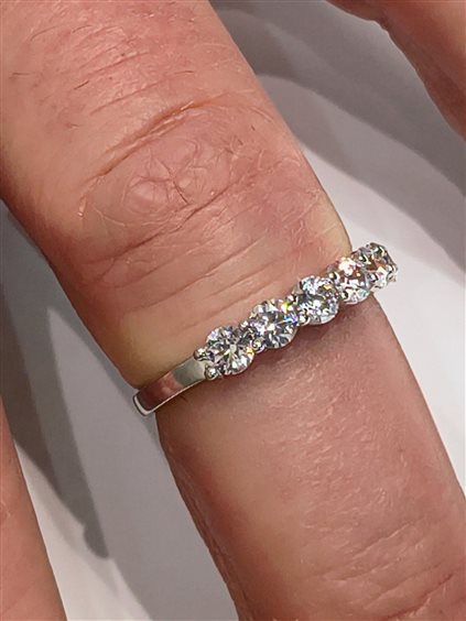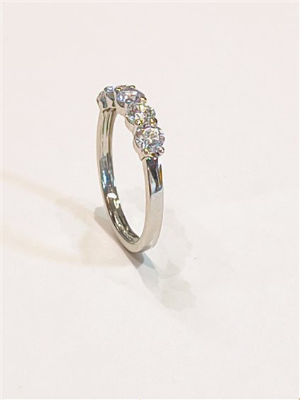 ELEGANTE ANELLO RIVIERA 5 pietre IN ORO BIANCO E ZIRCONI taglio brillante INCASSATI A GRIFFE.