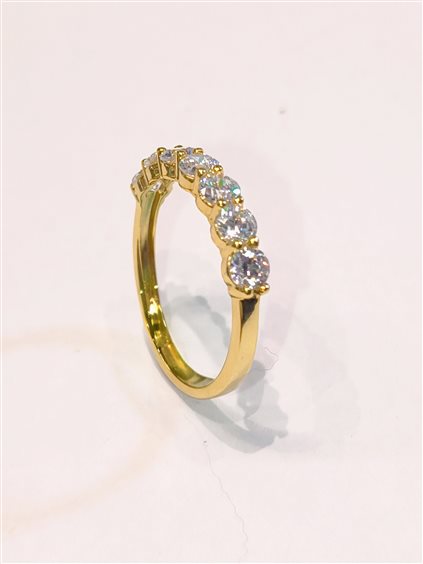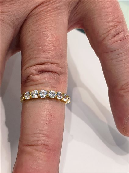 ELEGANTE ANELLO RIVIERA 7 pietre IN ORO GIALLO E ZIRCONI taglio brillante INCASSATI A GRIFFE.