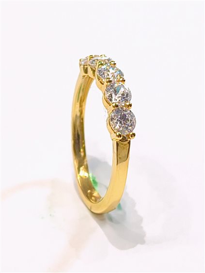 ELEGANTE ANELLO RIVIERA 5 pietre IN ORO GIALLO E ZIRCONI taglio brillante INCASSATI A GRIFFE.