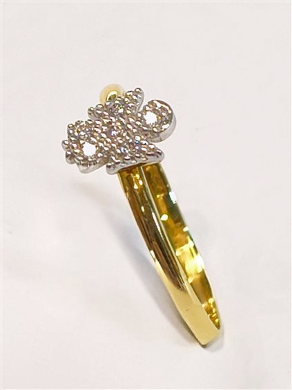 ANELLO IN ORO CON FIGURA DI ANGELO in oro bianco a contrasto, ZIRCONI INCASSATI A GRIFFE.