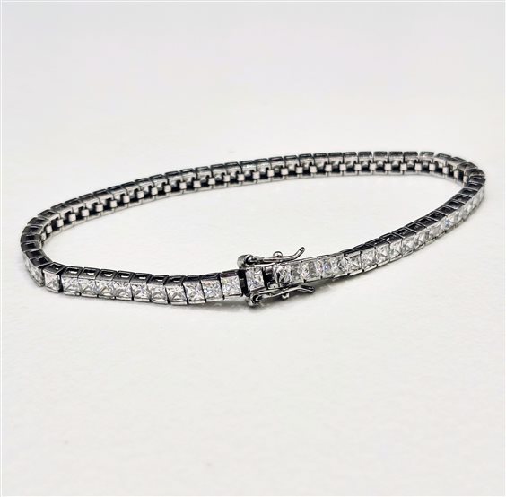 bracciale tennis cm 18 zirconi incassati senza sporgenze taglio della pietra baguette, non il classico bracciale ma qualcosa di seppur simile, diverso e particolare. chiusura con due sicurezze più la classica baionetta. larghezza del bracciale 3.5mm