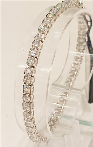 tennis argento con zirconi trattati elementi citcolari e quadrati con mantatura ribattuta per il massimo del confort, per il massimo della resa luminosa. made in italy spessore 4mm