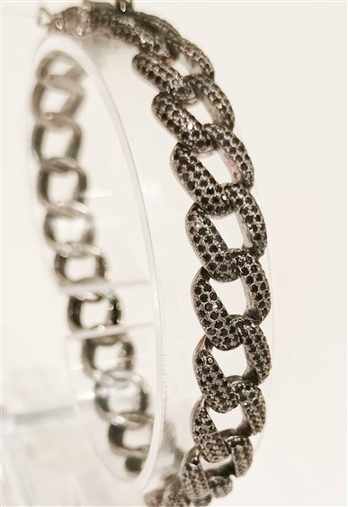 bracciale in argento made in Italy nichel free, colore antrancite, pietre incassate zirconi colore nero. spmmessore 9,6 mm