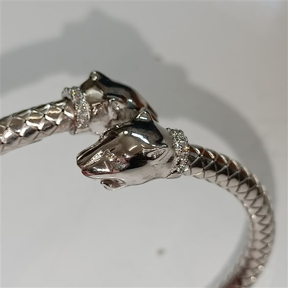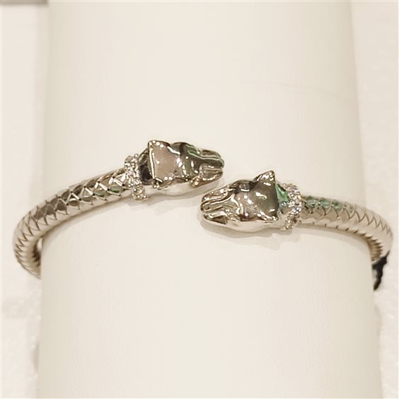 BRACCIALE RIGIDO ELASTICIZZATO, FANTASIA TESTA DI PANTERA E PARTE RIGIDA DEL BRACCIALE FANTASIA PELLE SERPENTE.