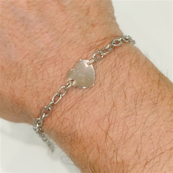 Elegante braccialetto a catena argento e centrale argento color rosa liscio.