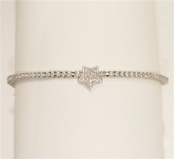 grazioso tennis donna con stellina centrale tempestata di zirconi chiusura a baionetta con sicure. spessore mm2.5