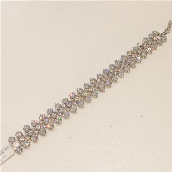 ELEGANTISSIMO BRACCIALE IN ARGENTO CON ZIRCONI INCASSATI A GRIFFE. ALTEZZA BRACCIAL ECM. 2 FANTASIA DI ZIRCONI GRANDI, MEDI E PICCOLI INTRECCIATI FRA LORO.