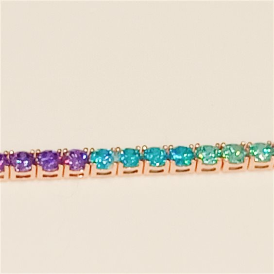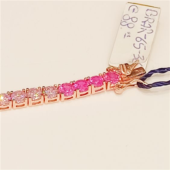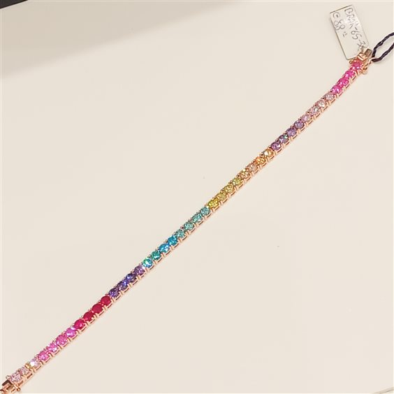 ELEGANTE BRACCILETTO IN ARGENTO ROSA MODELLO TENNIS CON ZIRCONI VARI COLORI, CHIUSURA A CASSETTA E DUE SICURE AI LATI A "OTTO".