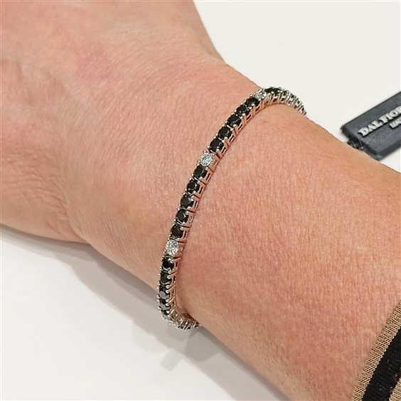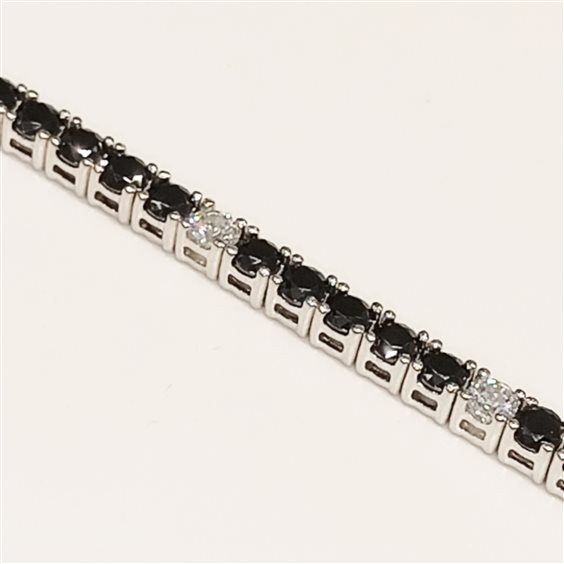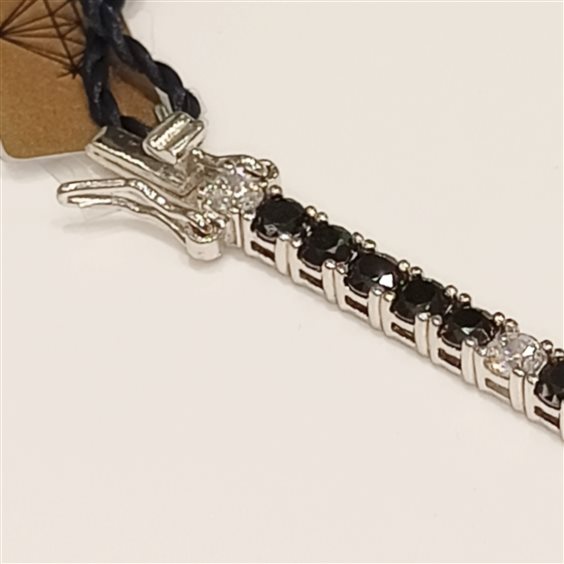ELEGANTE BRACCIALE TENNIS IN ARGENTO CON ZIRCONI BIANCHI E NERI, CHIUSURA A CASSETTA E SICURA A "OTTO" AI DUE LATI.