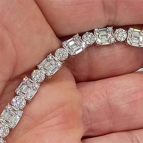 ELEGANTE BRACCIALE TENNIS CON ZIRCONI QUADRATI E PAVE' ROTONDI INCASSATI A GRIFFE.