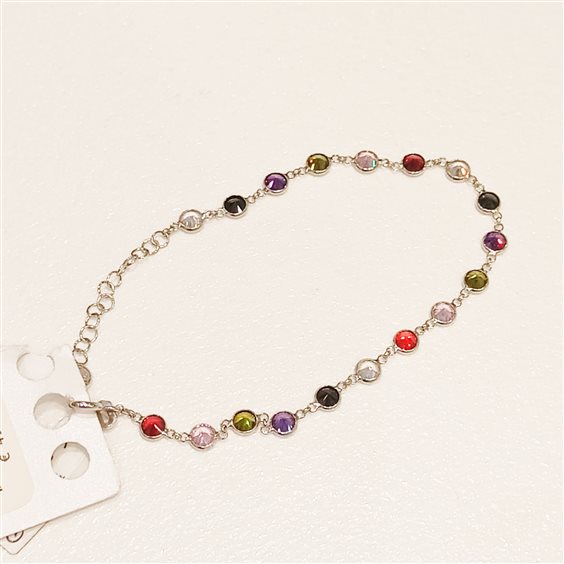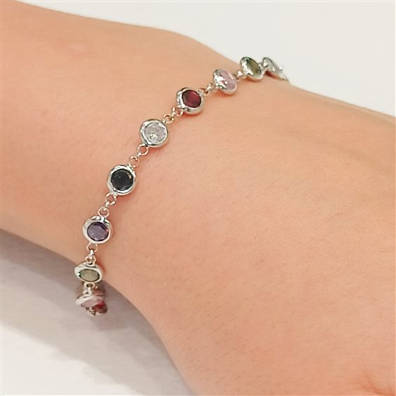 ELEGANTE BRACCIALETTO IN ARGENTO CON PIETRE INCASSATE A NOTTE, CRISTALLI COLORE ROSA, ROSSO, BIANCO, BLU, VERDE, VIOLA.