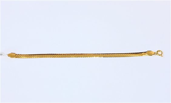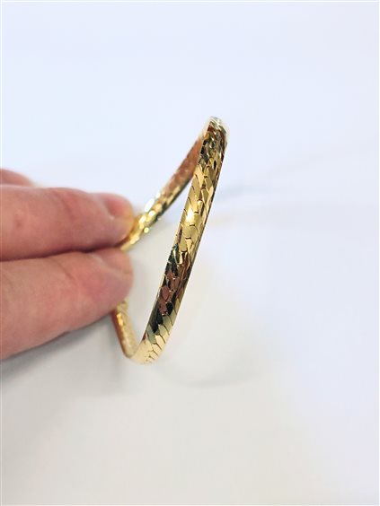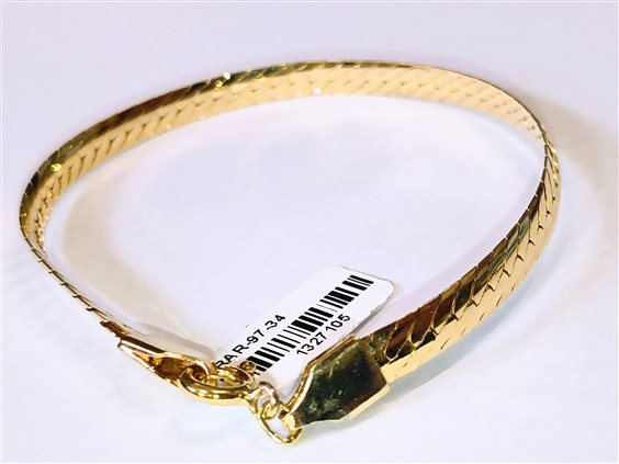elegante bracciale in argento dorato, maglia inglese leggermente bombata, chiusura con moschettone ad anello.