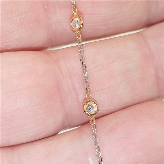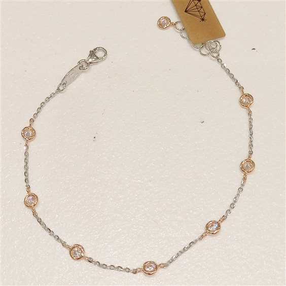 ELEGANTE BRACCIALETTO IN ORO BIANCO E ZIRCONI BIANCHI INCASSATI A CIPOLLINA IN ORO ROSA.