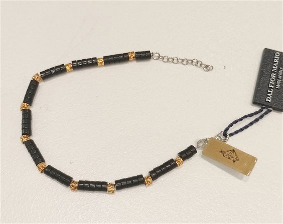 Bracciale unisex in argento e onice nera con particolari in argento rosa.