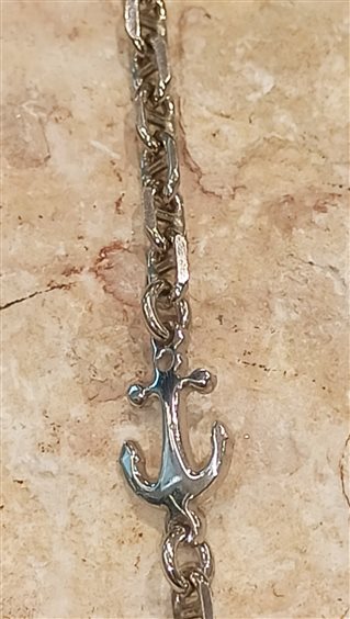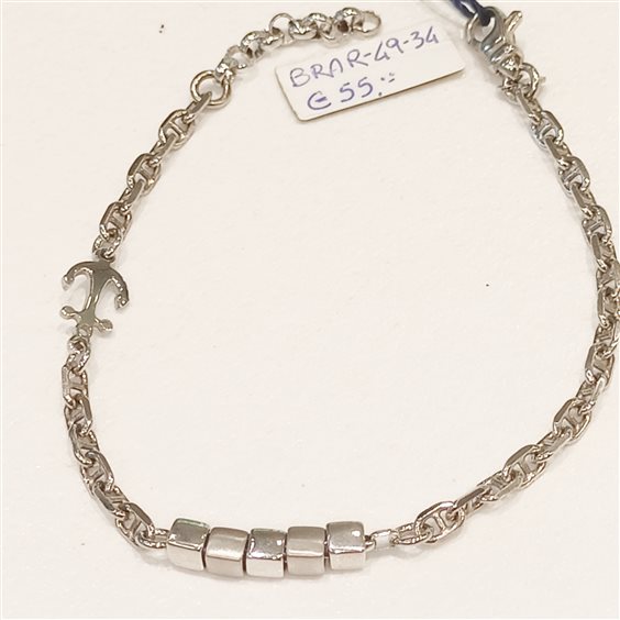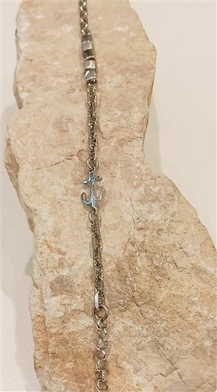 Bracciale in argento da uomo con maglia marinara e particolare forma di ancora e quadrattaini .