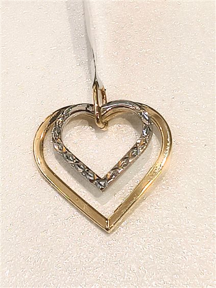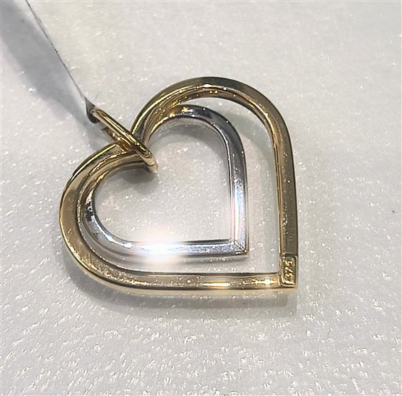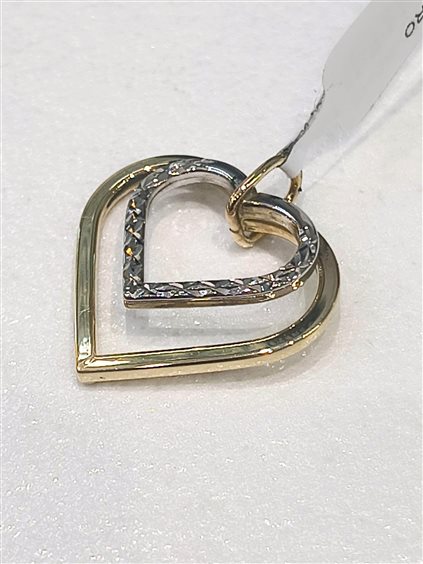ciondolo doppio cuore in oro 20x22 mm bicolore con finitura diamantata