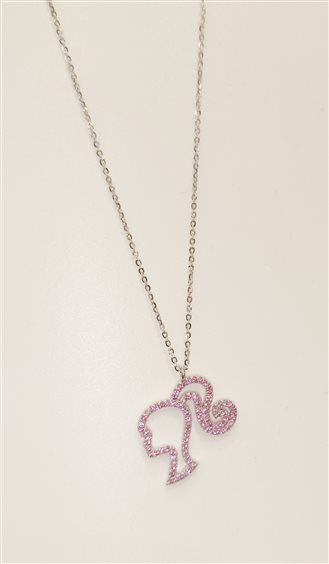 collana moda Barby, pendente con zirconi rosa incassati a griffe