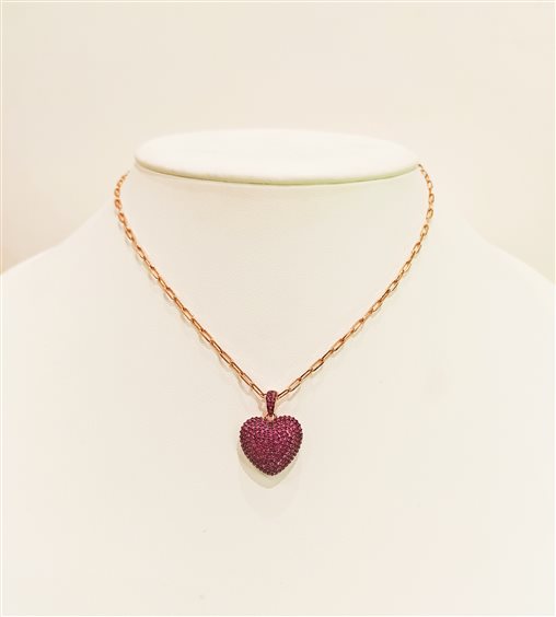 Elegante catena in argento rosa, pendente a forma di cuore con zirconi color rosa fucsia incassati a griffe.