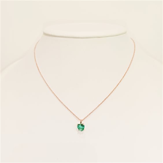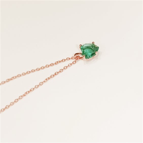 COLLANINA IN ARGENTO ROSA, PENDENTE CON PIETRA COLOR VERDE INCASSATA A GRIFFE