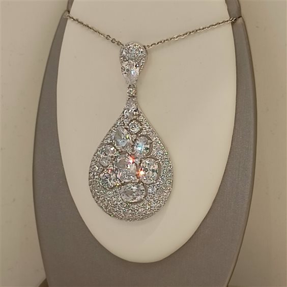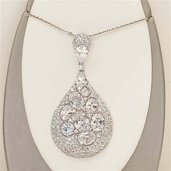 ELEGANTE COLLANA CON PENDENTE A FORMA DI GOCCIA CON ZIRCONI INCASSATI A GRIFFE.