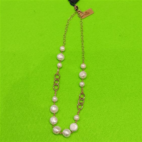 ELEGANTE COLLANA GIROCOLLO IN ARGENTO ROSA E PERLE DI FIUME BIANCHE DI DIVERSE DIMENSIONI.