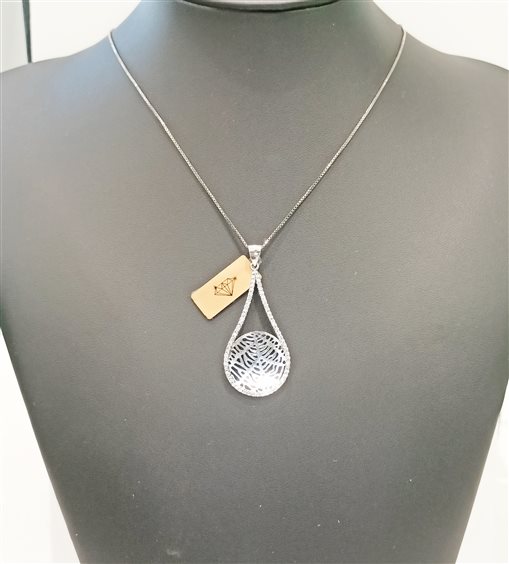 ELEGANTE COLLANA IN ARGENTO CON PENDENTE FANTASIA A GOCCIA E ZIRCONI INCASSATI A GRIFFE.