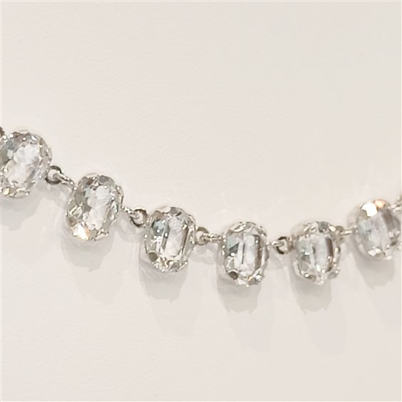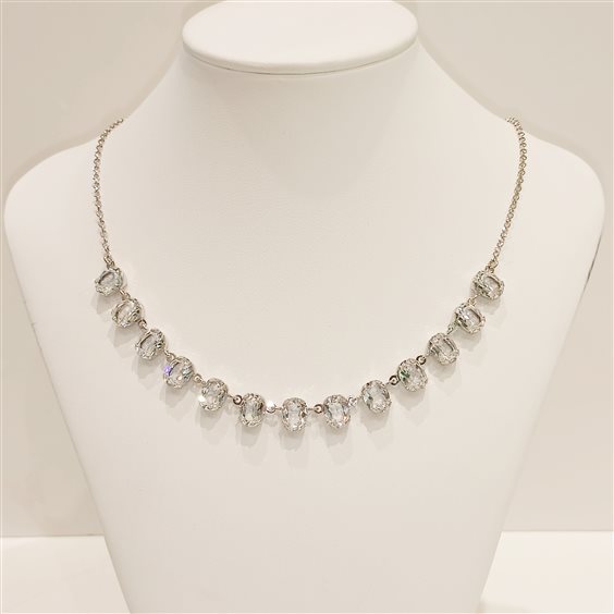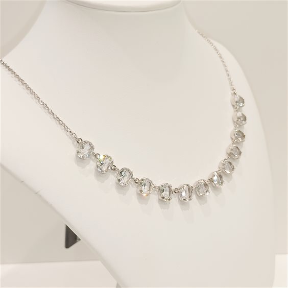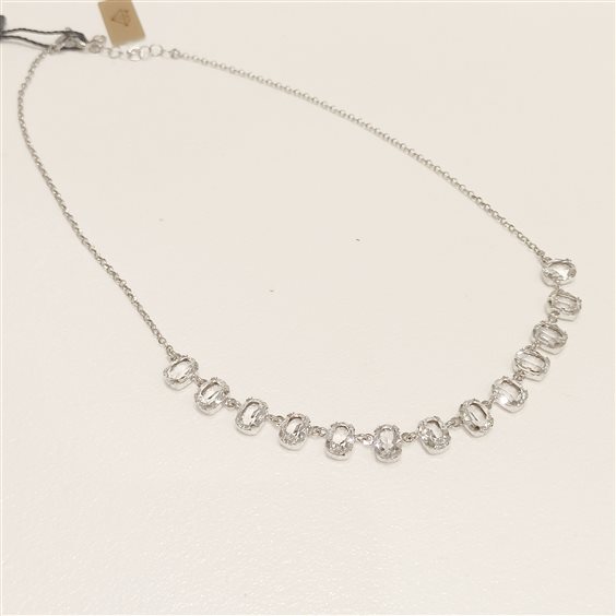 ELEGANTE COLLANA IN ARGENTO, CON PICCOLI PENDENTI A FORMA OVALE NELLA PARTE CENTRALE DELLA COLLANA.