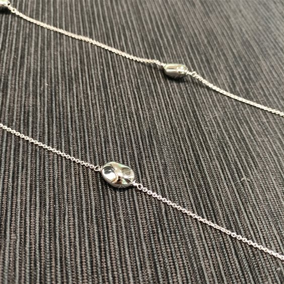 ELEGANTE CATENA IN ARGENTO LUNGA CON PARTICOLARI A FORMA DI PEPITA A DISTANZA DI 7 CM TRA LORO.