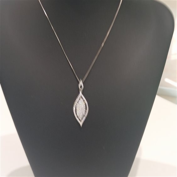 ELEGANTE COLLANA IN ARGENTO CON PENDENTE A GOCCIA IN ZIRCONI INCASSATI A GRIFFE.