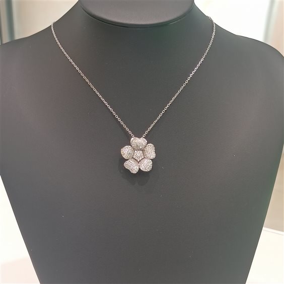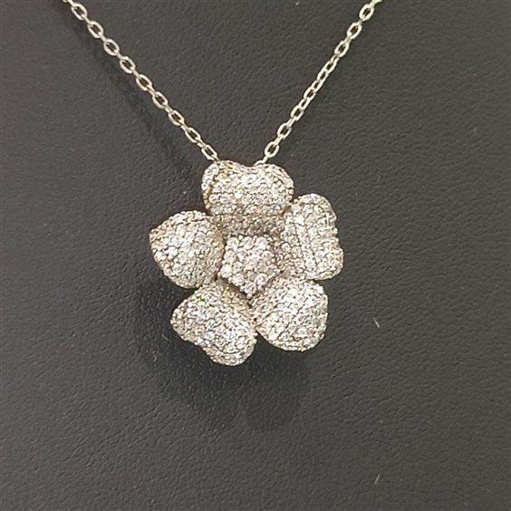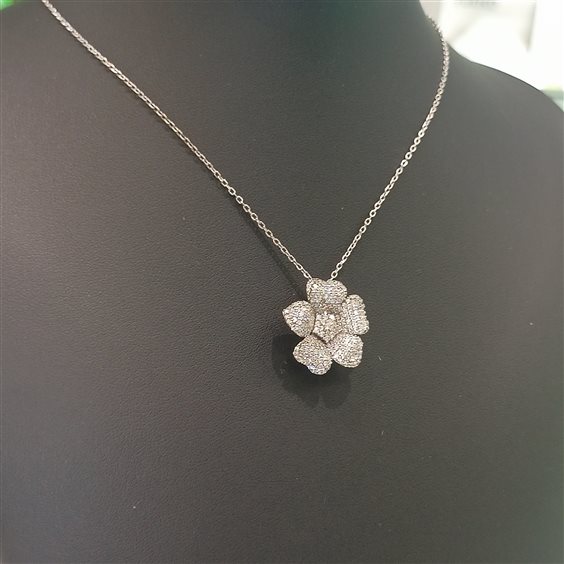 ELEGANTE COLLANA IN ARGENTO CON PENDENTE A FORMA DI FIORE CON PAVE DI PICCOLI ZIRCONI INCASSATI A GRIFFE.