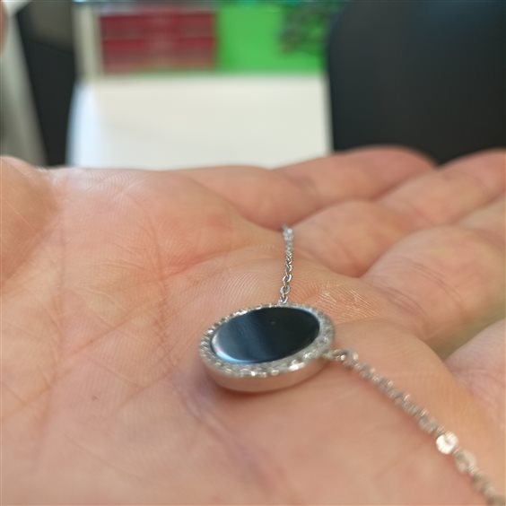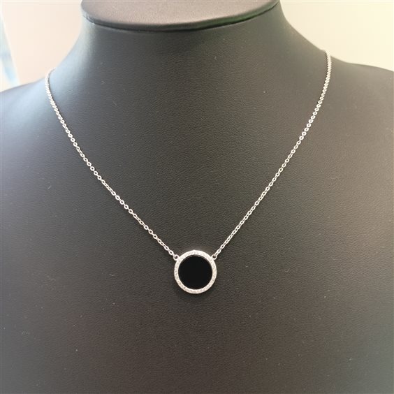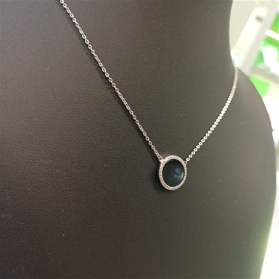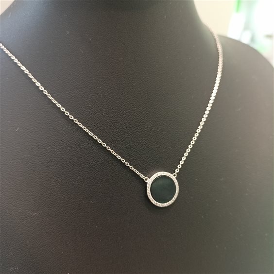 ELEGANTE CATENA IN ARGENTO CON CENTRALE IN PIETRA ONICE, CONTORNO IN ZIRCONI INCASSATI A GRIFFE.