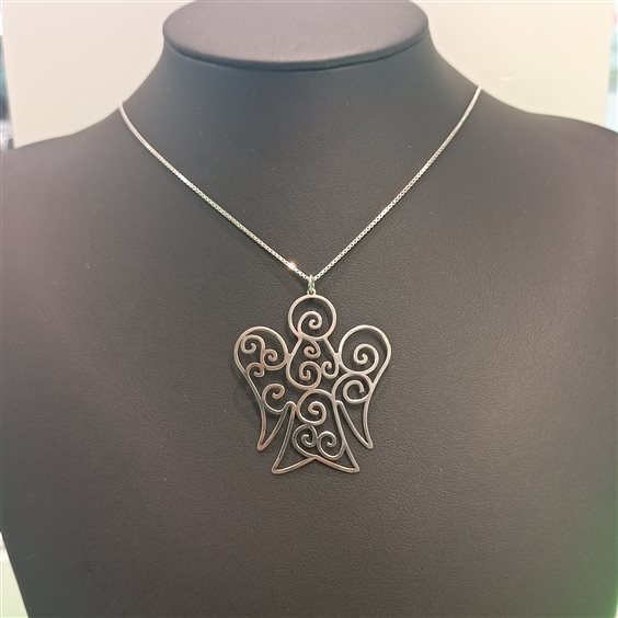 GRAZIOSA COLLANA IN ARGENTO MAGLIA VENEZIANA CON PENDENTE IN ARGENTO LUCIDO A FORMA DI ANGELO TRAFORATO .
