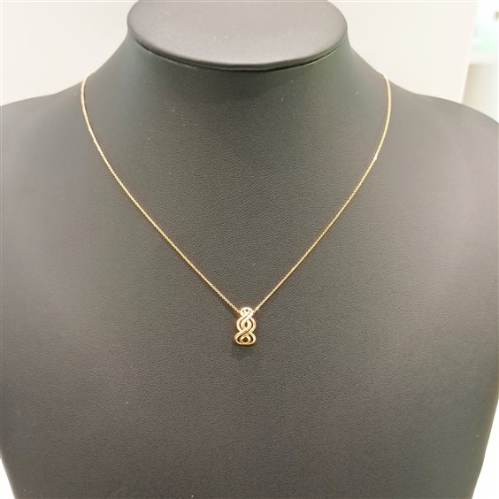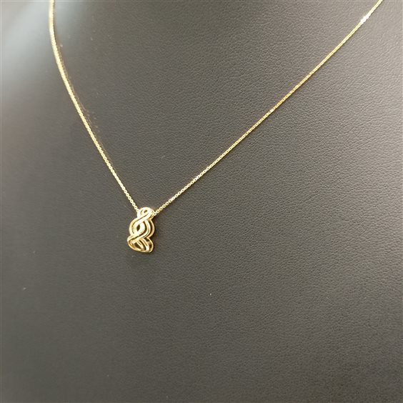 ELEGANTE COLLANA IN ORO GIALLO CON PENDENTE FANTASIA A INTRECCIO.