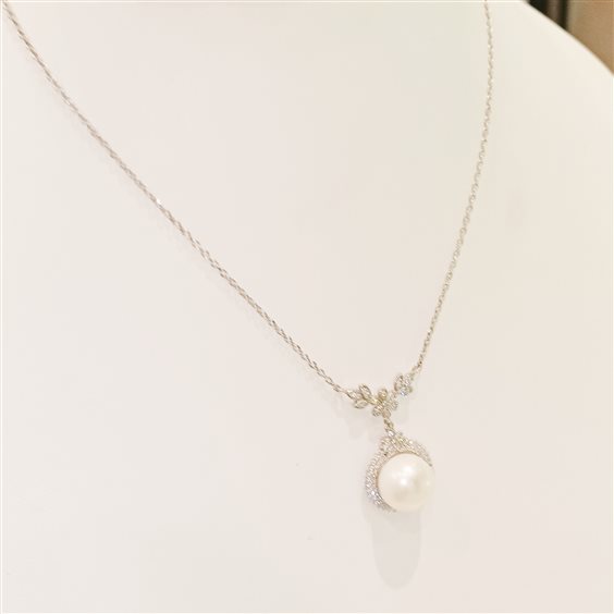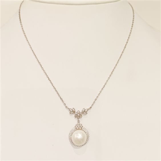 collana girocollo con perla centrale mm12,5 naturale fresh argento 925 contorno di zirconi . lavorazione artigianale. lunghezza max 45 minima 40 cm