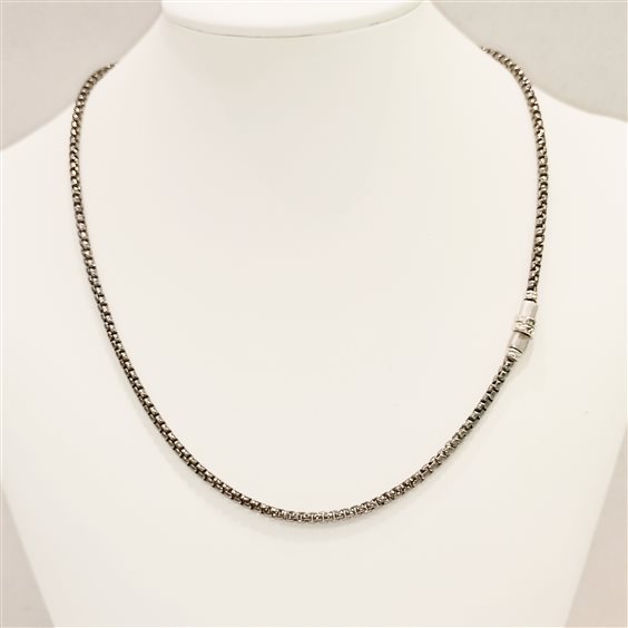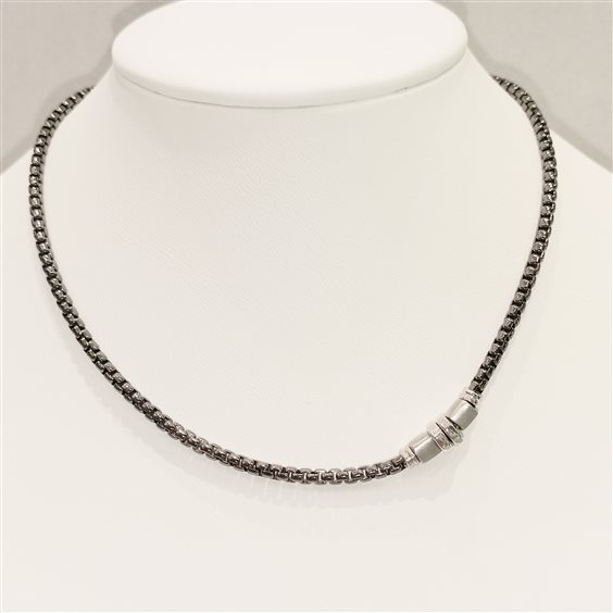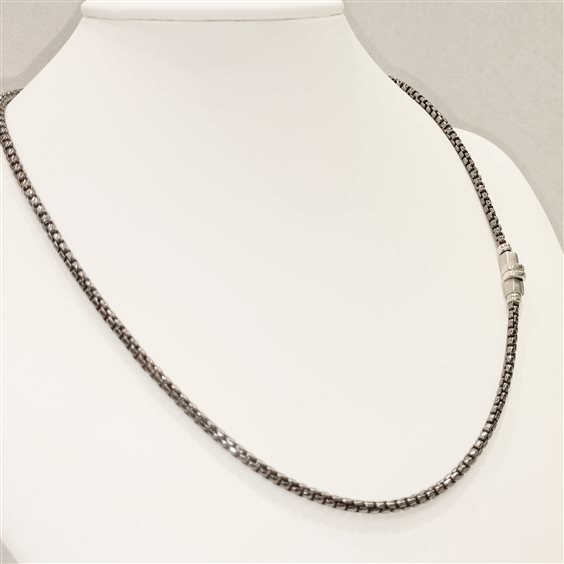 SPORTIVA CATENA DA UOMO IN ARGENTO MAGLIA CODA DI TOPO CON PARTICOLARE LUCIDO E SATINATO AD UN LATO. CHIUSURA CON GANCIO E CATENINA PER MODIFICA LUNGHEZZA.