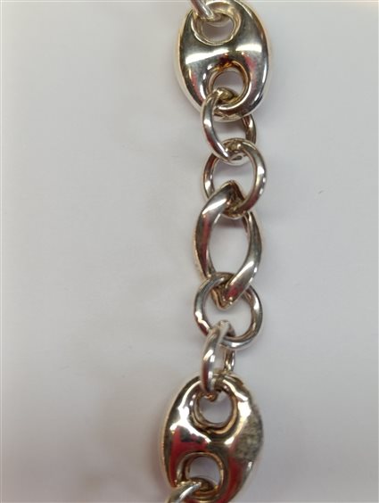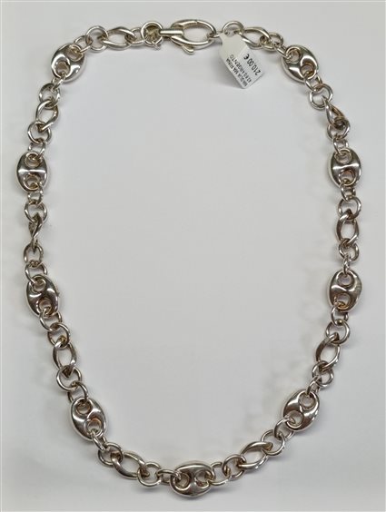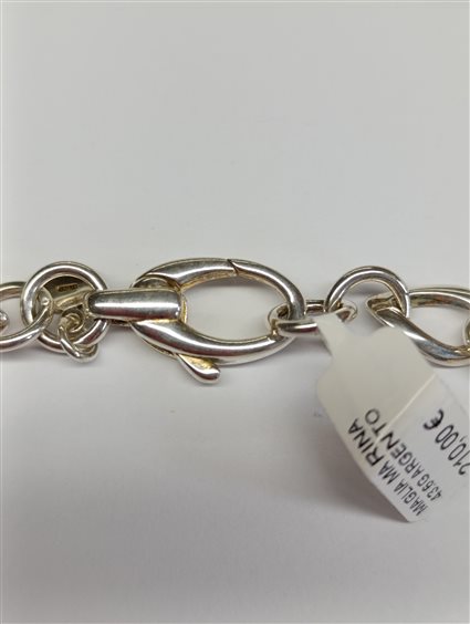 SPORTIVA CATENA DA UOMO IN ARGENTO MAGLIA MARINA CON IMPORTANTE GANCIO A MOSCHETTONE DI CHIUSURA.