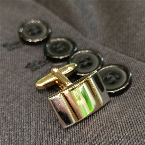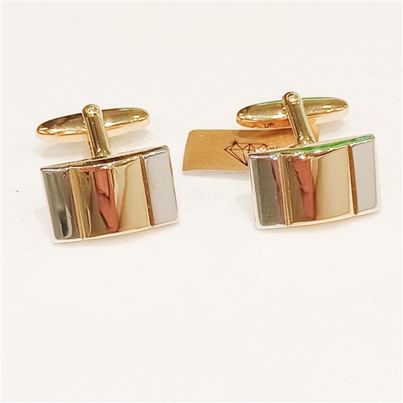 ELEGANTI GEMELLI N ACCIAIO COLOR ORO E ACCIAIO FORMA RETTANGOARE DALLA BASE LUCIDA BICOLOR.